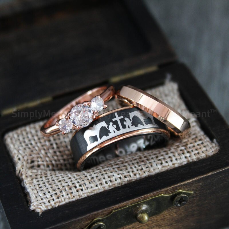 $248.00Praying Cowboys Rings, Couple Wedding Bands, Cowboys Rings