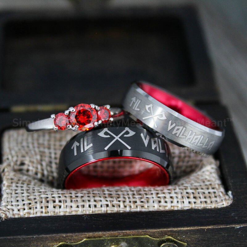 $258.00Til Valhalla Rings, Til Valhalla Wedding Bands, Vikings Couple Rings