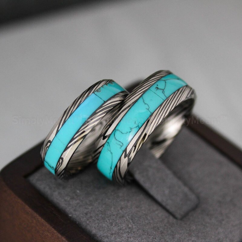 $128.00Turquoise Rings, Couple Turquoise Wedding Bands, Silver Tungsten Bands with Turquoise Inlay