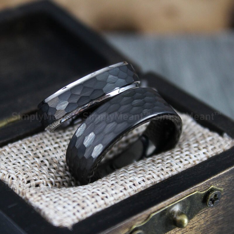 $248.00Couple Rings, Black Wedding Bands, Matching Wedding Rings, Hammered Rings