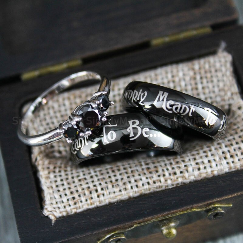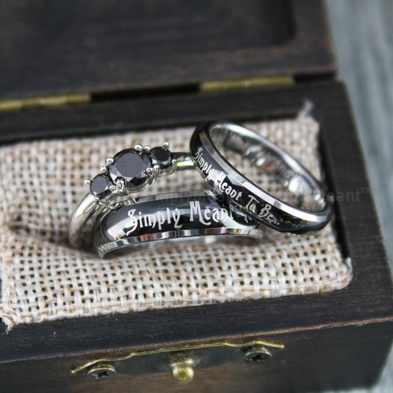 $108.00Simply Meant To Be Rings, Simply Meant To Be Bridal Wedding Set, Black Wedding Band