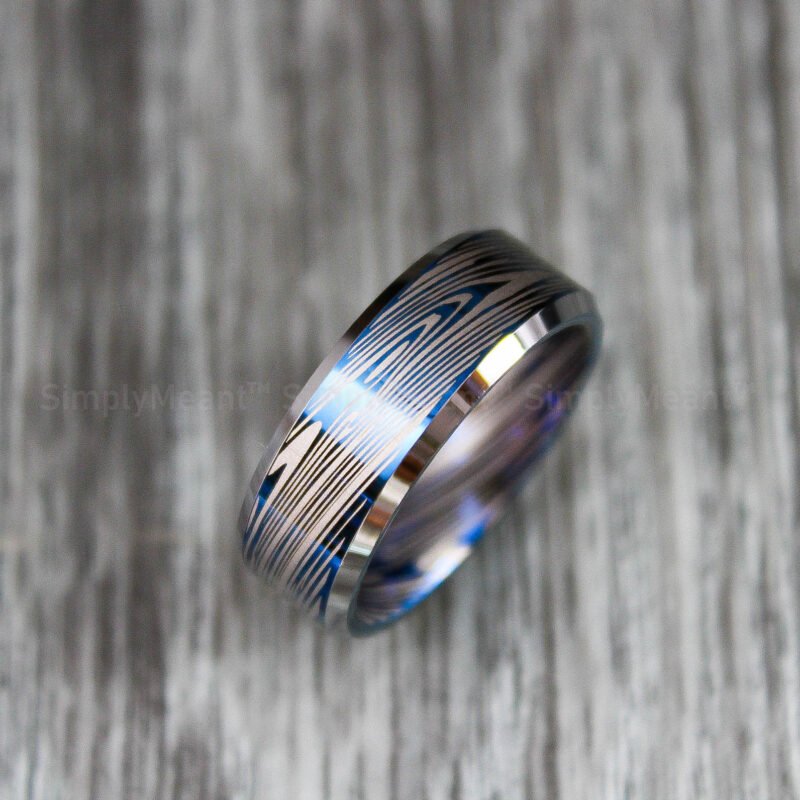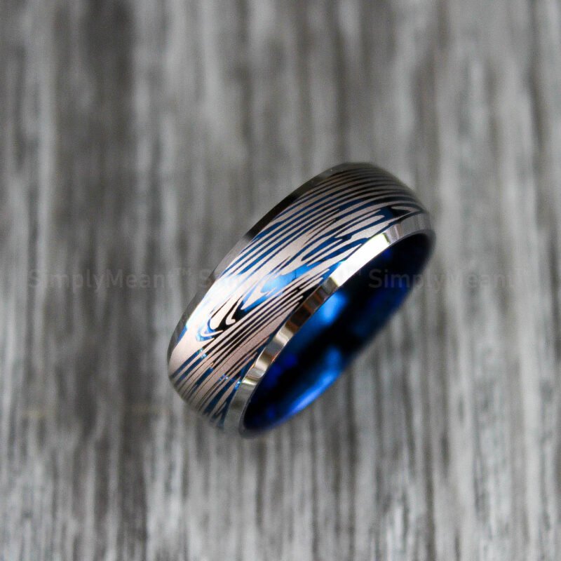 $198.00Blue Wedding Band, Blue Wedding Ring, Blue Tungsten Wedding Band