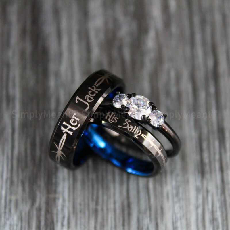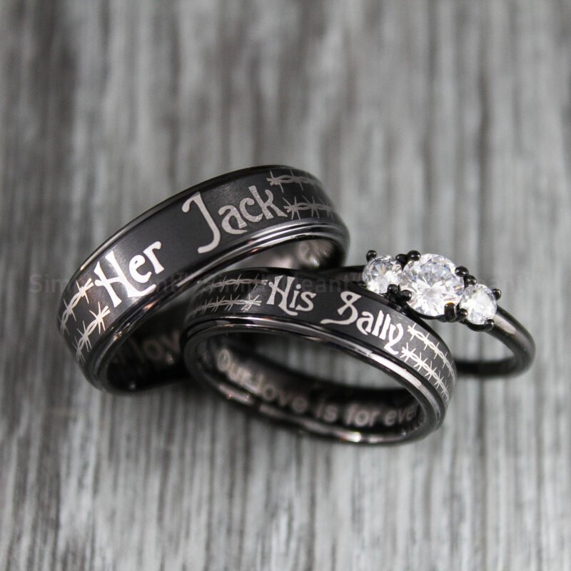 Her Jack His Sally Rings, Simply Meant To Be Wedding Bands, Black Wedding Bands