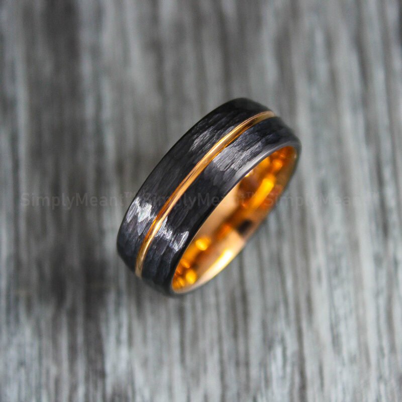 $248.00Meteorite Rings, Meteorite Wedding Bands, Rose Gold Tungsten Bands with Meteorite Inlay