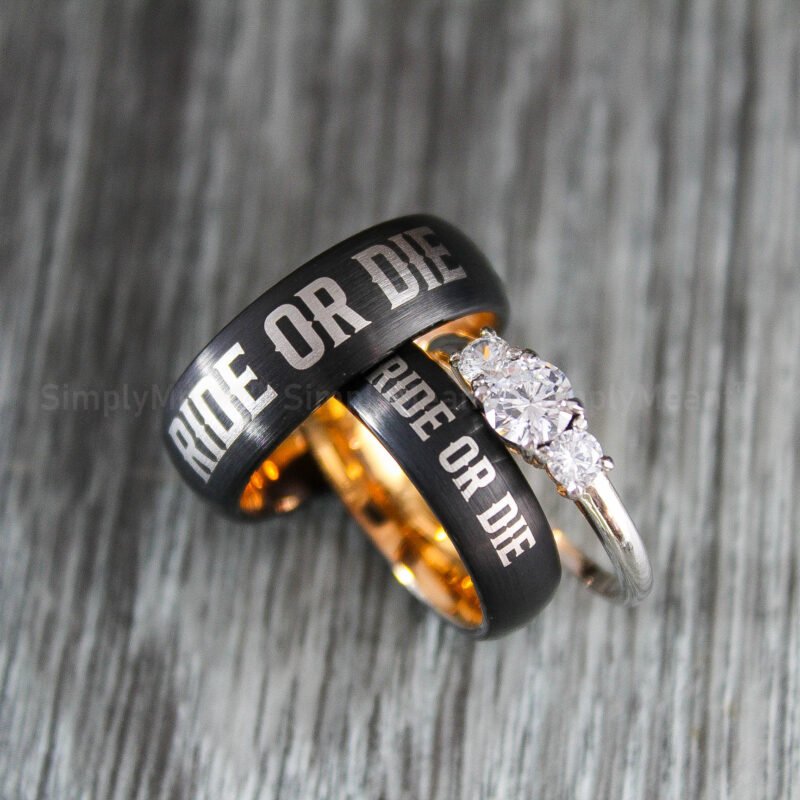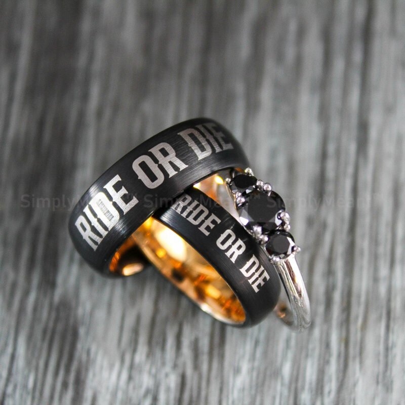 $108.00Ride or Die Rings, Ride or Die, Ride or Die Wedding Rings, Ride or Die Wedding Bands, Black Wedding Rings, Black Wedding Bands, Biker Rings