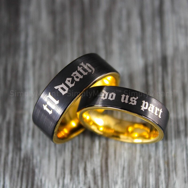 $198.00Til Death Rings, Black Wedding Bands, Couple Ring Set, Matching Couple Rings