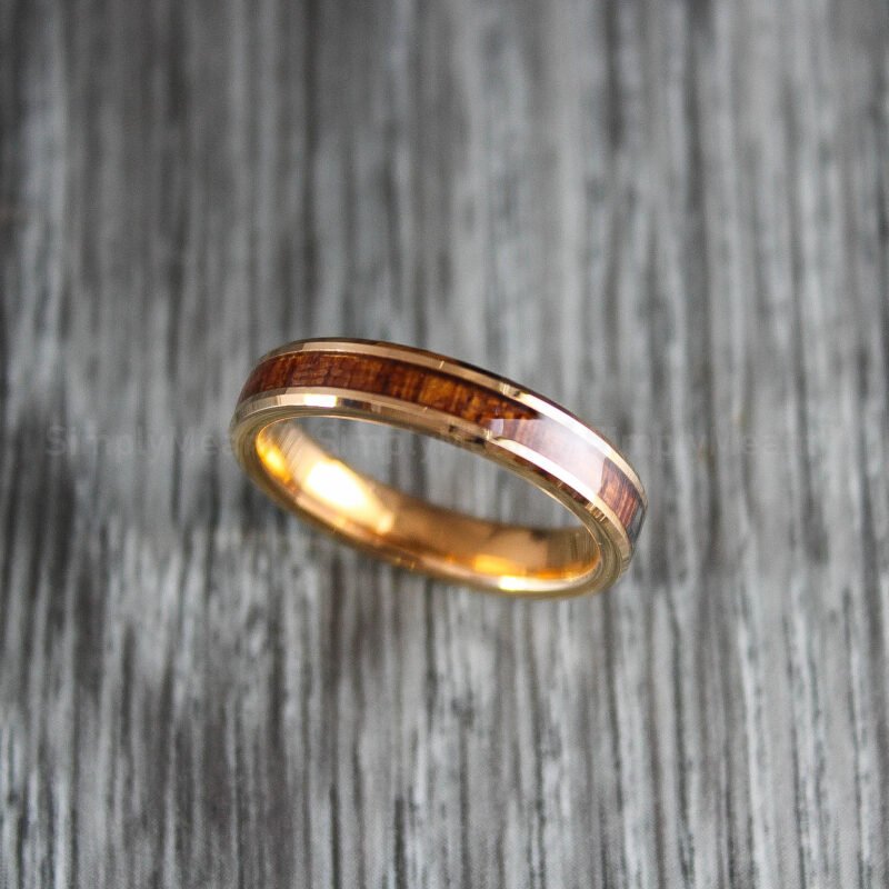 $108.00Wood Ring, Wood Wedding Band, 4mm Rose Gold Tungsten Wedding Band, Wood Wedding Ring