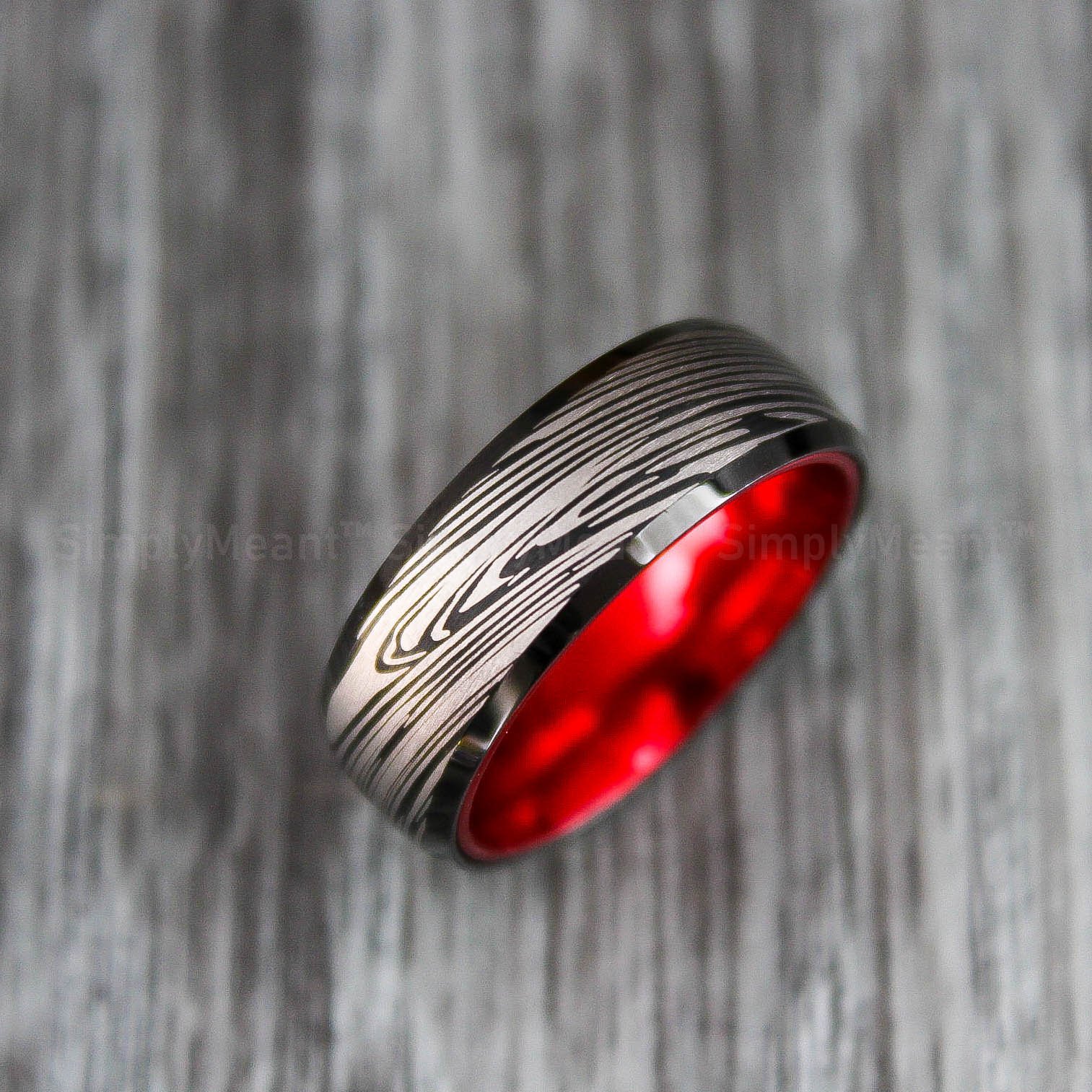 8MM BLACK TUNGSTEN BAND WITH DOMED EDGE RED INTERIOR