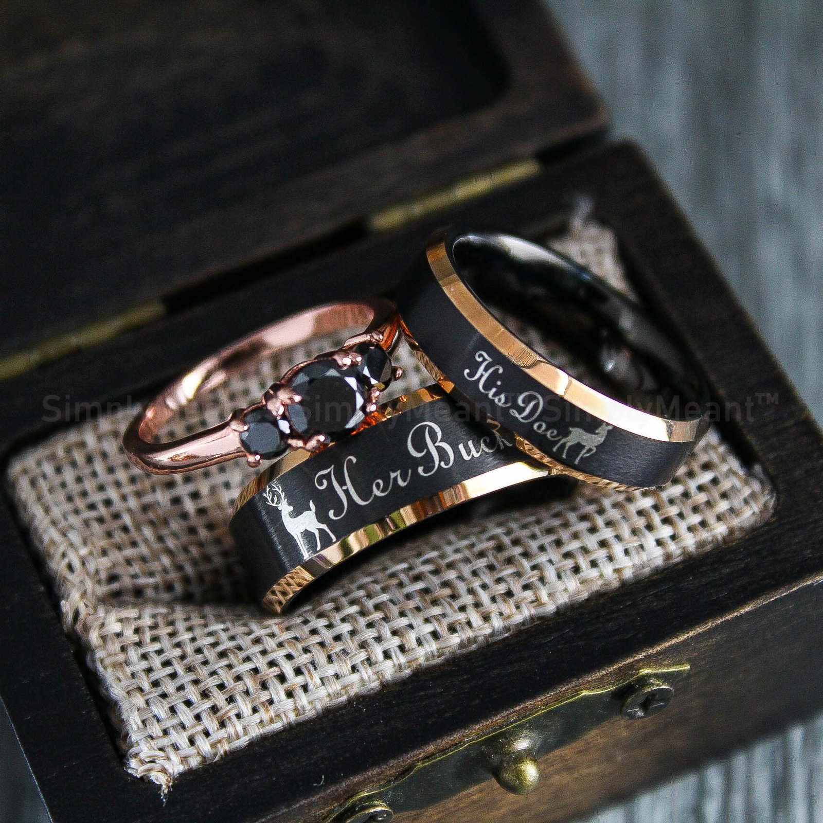 Her Buck His Doe Rings, Buck and Doe Rings, Buck and Doe Wedding Bands, Black Wedding Rings, Couple Rings