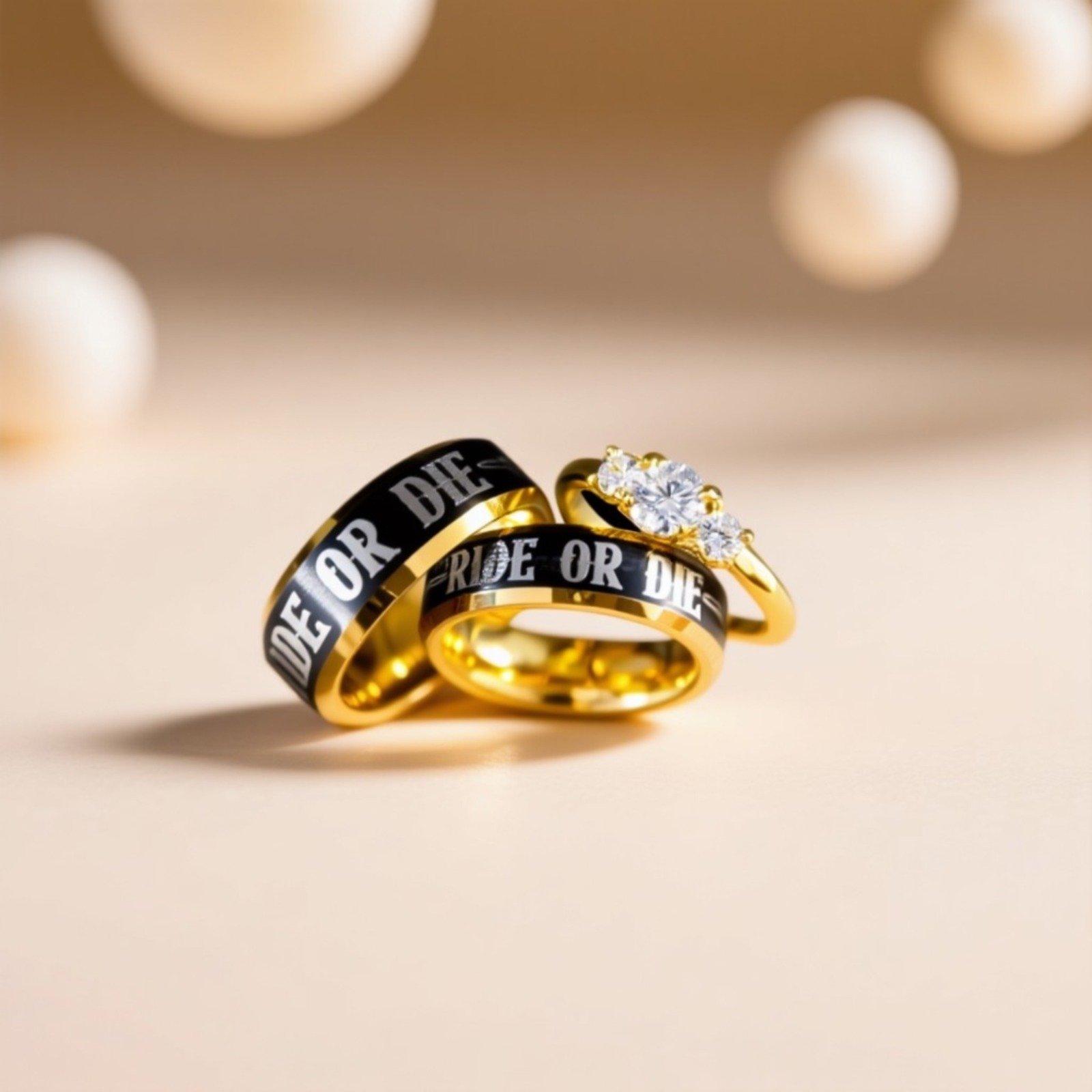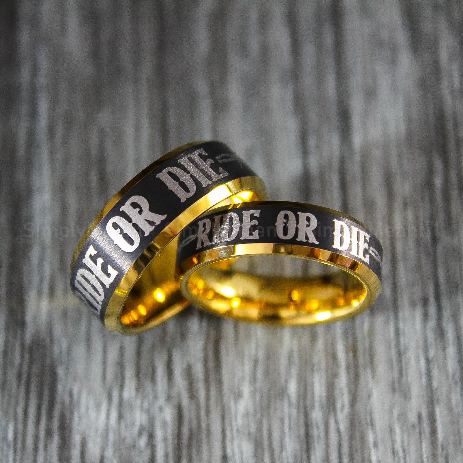 Ride or Die Rings, Black Wedding Bands, Couple Ring Set, Matching Couple Rings